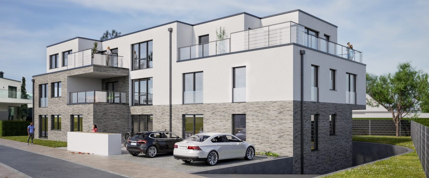 Es entstehen drei 2-Zimmer-Wohnungen inkl. offener Wohnküche, vier 3-Zimmer-Wohnungen inkl. offener Wohnküche und eine 4-Zimmer-Wohnung inkl. offener Wohnküche. Die Wohnflächen der Einheiten liegen zwischen ca. 69 m² und 138 m². Die Erdgeschosswohnungen links und mittig verfügen jeweils über eine Terrasse mit Gartenanteil. Die Erdgeschosswohnung rechts ist mit einem Balkon ausgestattet. Alle Wohnungen im 1. Obergeschoss sowie die Wohnung im Dachgeschoss links verfügen über großzügige Balkone. Das Penthouse im Dachgeschoss rechts bietet eine umlaufende Dachterrasse, die nahezu die gesamte Wohnung umschließt.